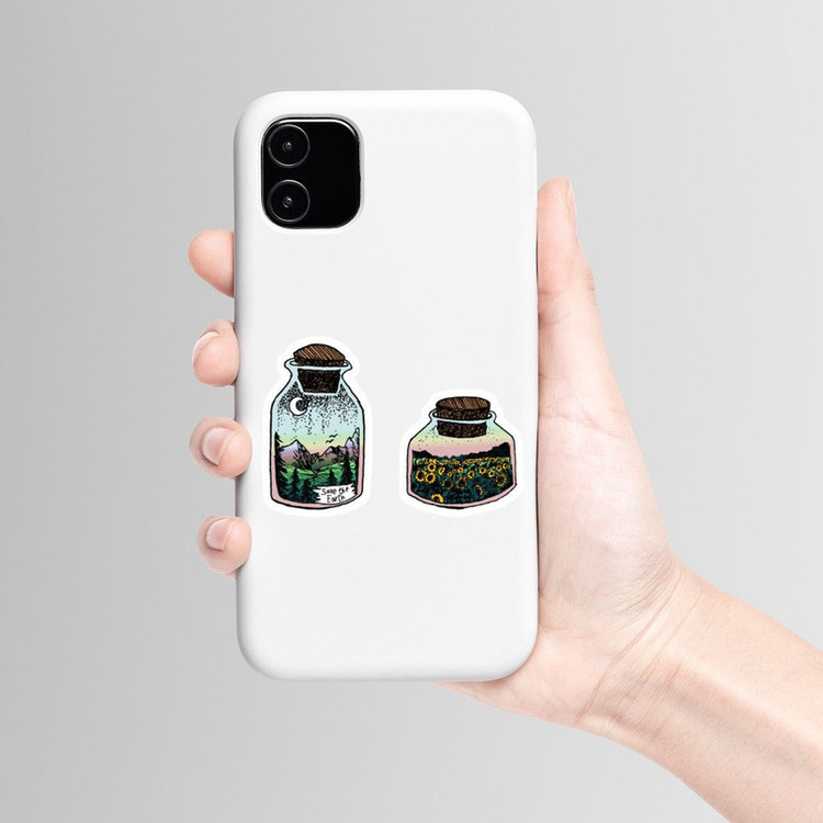 استیکر لپ تاپ و موبایل بووم طرح زمین رو نجات بدیم کد M18 مجموعه 2 عددی